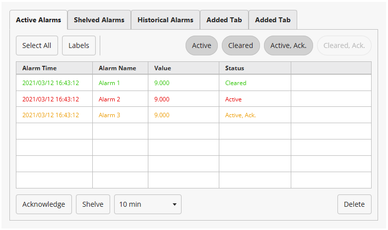 The Alarm Summary Object has received a substantial upgrade, offering developers greater flexibility for alarm display and management: