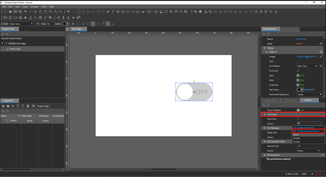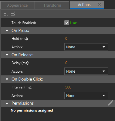 - Actions: Assign commands/scripts for On Press, On Release, and On Double-click