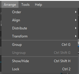 It helps adjust object positioning, allowing you to move objects forward or backward, align, transform, group or ungroup, show or hide, and lock objects.