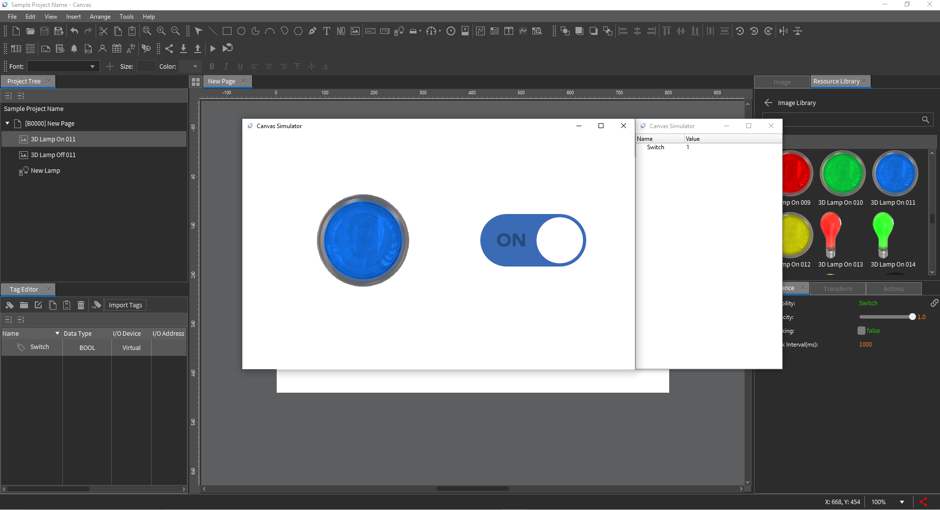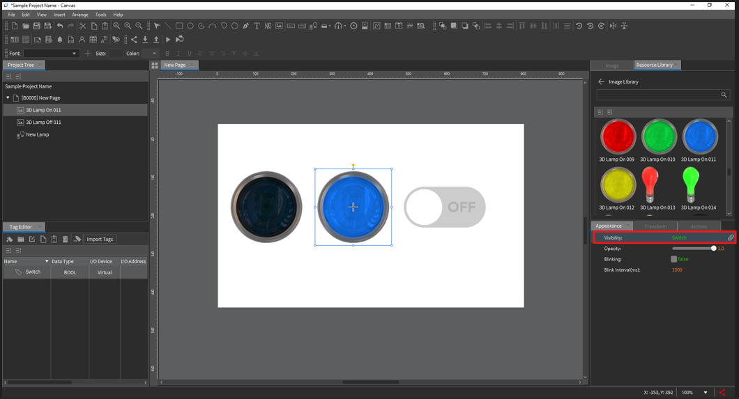- Drag & drop the bool tag into the Visibility section of the ON light. Place the ON light image on top of the OFF light image.