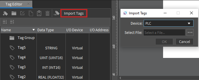 - The Import Tags feature transfers tags from other projects, Allen-Bradley (.L5X), and CICON (.csv, .VAR) files to Canvas.