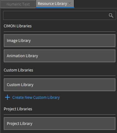 Project Library functions similarly to the Custom Library but is stored within the project. Acceptable image formats: .png, .jpg, .gif, .jpeg, .bmp, and .svg.