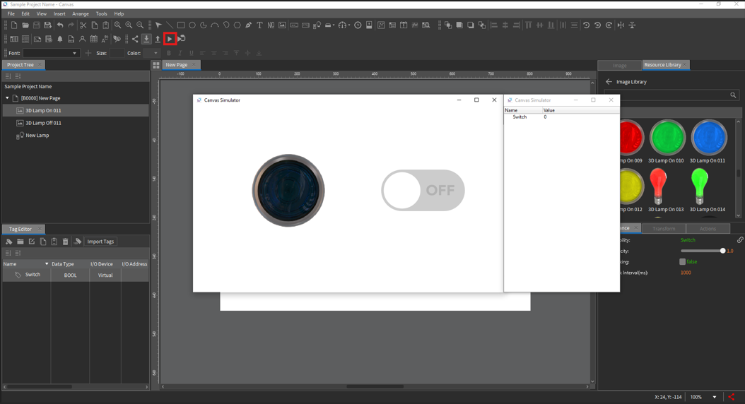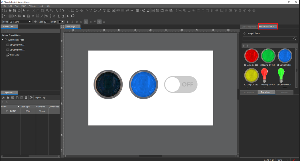 - From the Resource Library, drag and drop an OFF-and-ON light image.